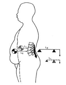 If you’re holding a 10-pound object 10 inches away from your spine, the effective load on your disc isn’t 10 pounds. Instead, it multiplies to 100 pounds (10 x 10). To keep you upright, your muscles must generate an equal force on the opposite side. That means the total pressure on your spine in this situation is 200 pounds.